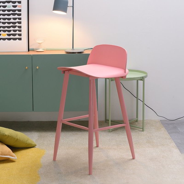 Ghế quầy Bar Nerd chân sắt giả gỗ lưng nhựa nhiều màu